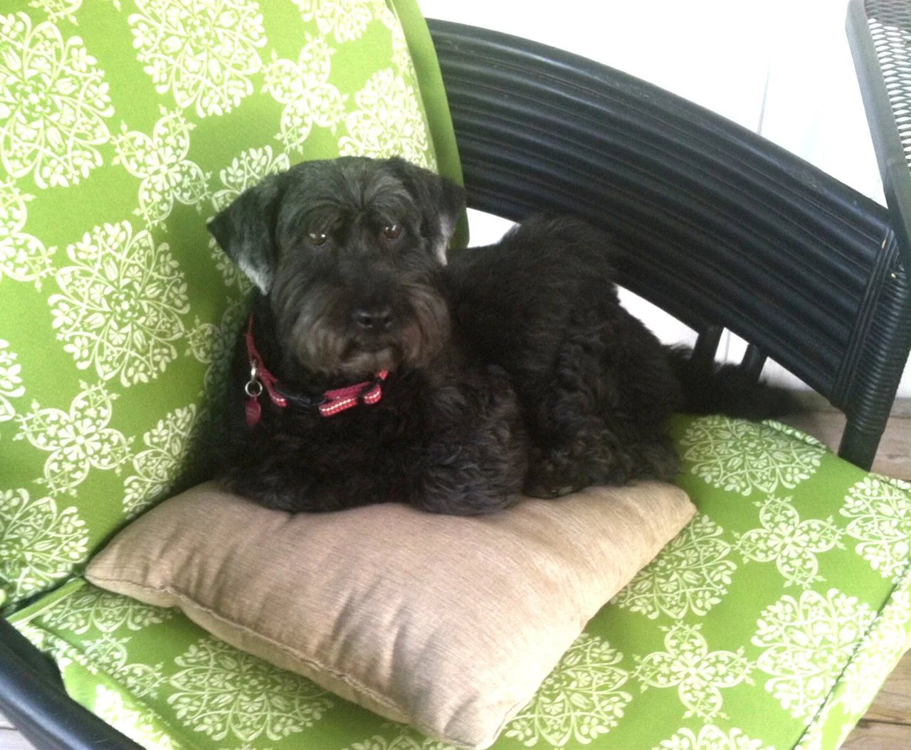 Sweet Dottie, the brand’s namesake, relaxing on her favorite porch chair.